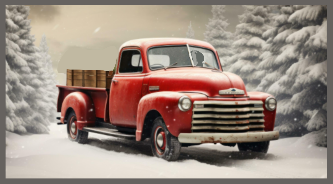 While we were going from tree to tree doing this -- squealing in laughter each time we were hit -- we heard an engine down below and saw Jack's old pickup truck chugging up the drive to his little house. The truck is an antique that he restored, with those big round fenders in the front, and in the snowfall, it looked like a Christmas card.