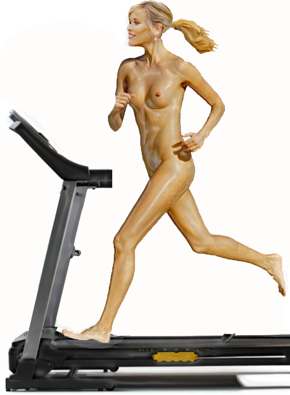 Mickey will lift weights with Mona and Andrea, while Raygan likes to run on the treadmill. She's badass on it too, running flat out. The first time that Mickey and Raygan joined us, we happened to start out in the pool, and so all of us were still nude as we worked out. Now, I must emphasize here that Raygan is